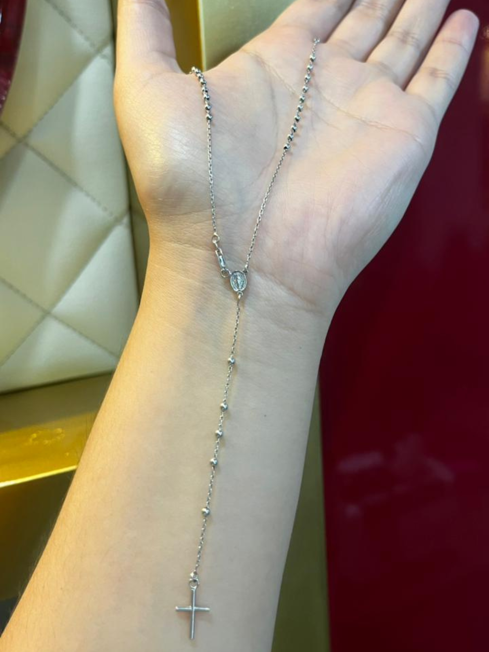 •Rosario Liso Metal Italiano Color Oro blanco Piedra – Longitud 40 cm – Peso 3.8 gr
