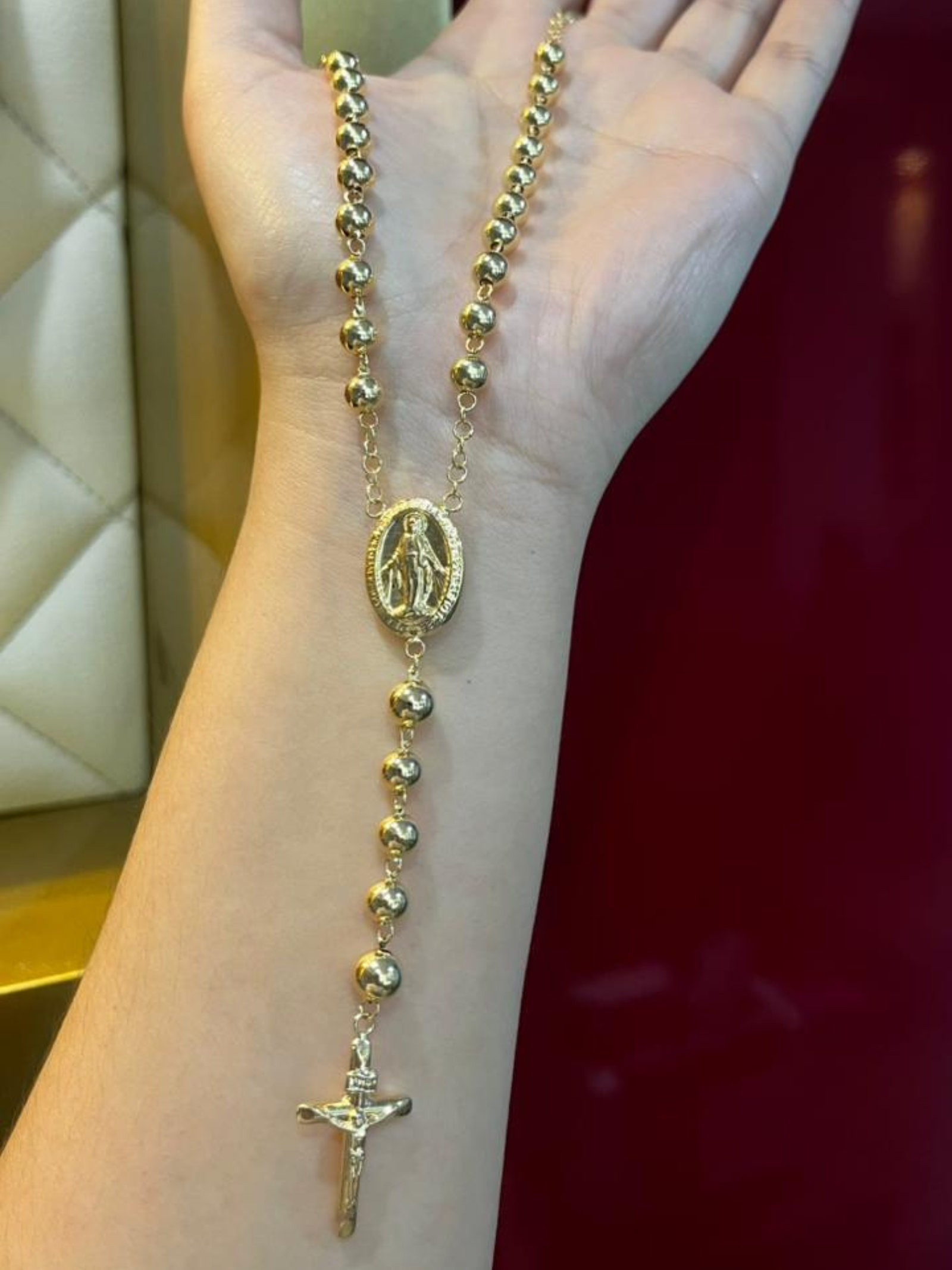Rosario diamantado Metal Nacional Color Oro amarillo Piedra circones – Longitud 65cm – Peso 18.0 gr